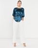 Women All Over Print Velvet Wide Leg Trousers [Parallel Import]