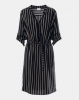 Contempo Stripe Shirt Dress Gold Ring Tie Black Multi Product Description