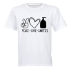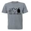 BuyAbility Peace. Love. Sanitize - Adults - T-Shirt Product Description